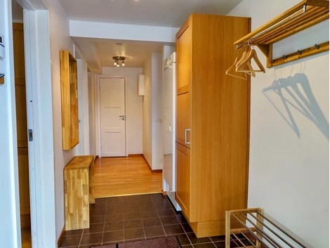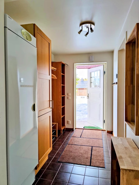 Lägenheten ligger på första våningen av två i ett flerfamiljshus från 2007. Hela bostaden har parkettgolv och vitmålade väggar. Hallen har klinkergolv vid entrén med städskåp, torkskåp och hatthylla samt ett rymligt förråd med klädstång och hyllor.