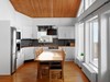 Köket har vita luckor, arbetsbänk i trä med mosaik ovan. Maskinell utrustning: Ugn, mikrovågsugn, kyl/frys, köksfläkt samt diskmaskin. Alla vitvaror har rostfritt utförande.