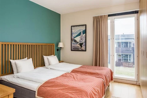 Två sovrum, båda har dubbelsängar. (Sängarna går att dra isär.)