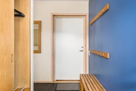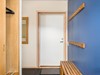 Entré med avhängningsmöjligheter för ytterkläder och torkskåp.